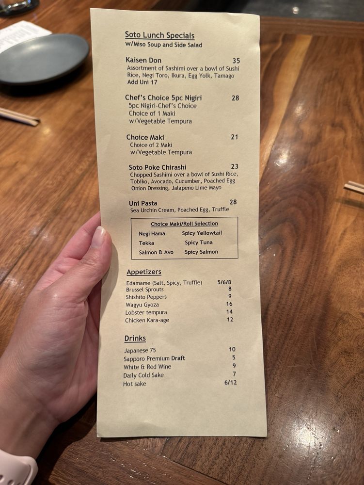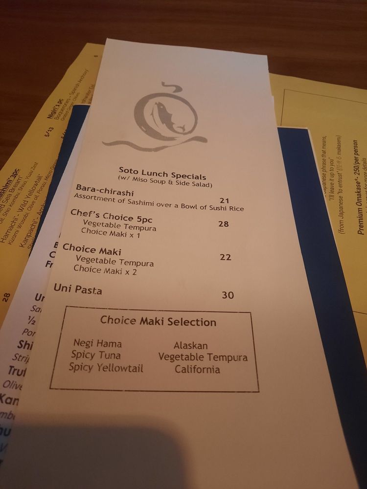 Vegetarian options are available, ensuring inclusive dining for all. With attentive service and an inviting atmosphere, Soto stands out as a must-try spot for sushi aficionados and newcomers alike.
